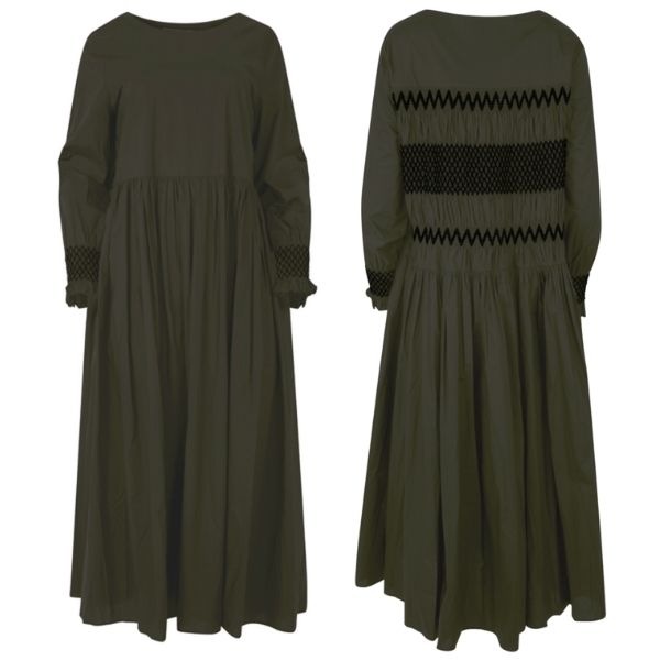 Features shirred detailing across the back and at the cuffs. It is a gorgeous dress and can be worn with flat boots or sneakers for a cool casual look.Β