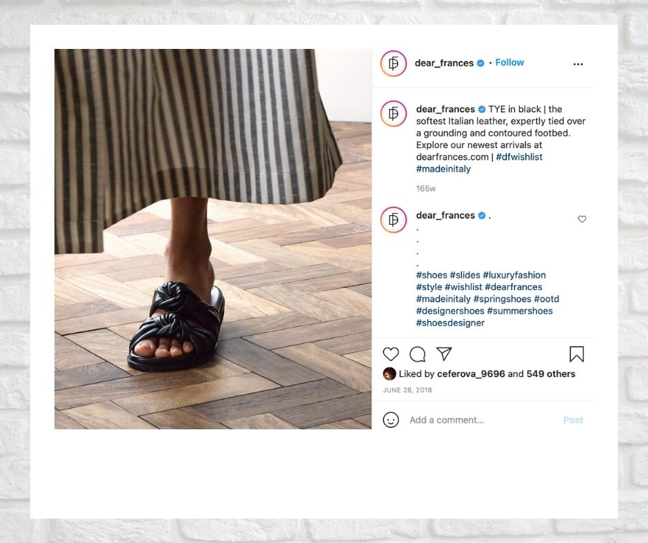 London-based DEAR FRANCES was founded with the clear objective of offering luxury, designer classics to modern women. It has become synonymous with modern, elegant designs, offering styles to hero a classic wardrobe.