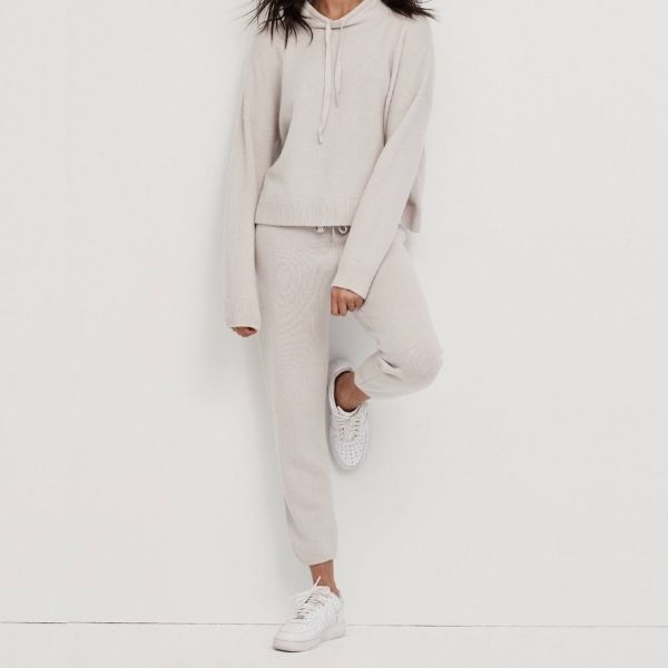 PRODUCTS | Recycled Cashmere Hoodie Oatmeal (US$ 295) and Recycled Cashmere Track Pants Oatmeal (US$ 250)